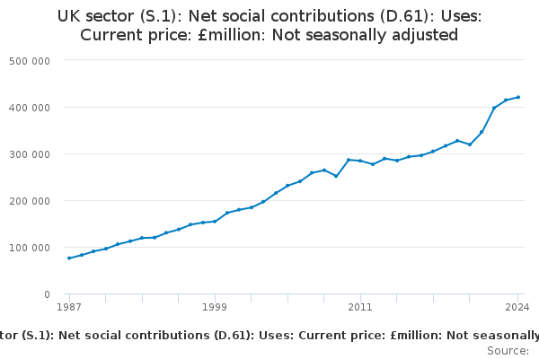 Download this time seriesUK sector (S.1): Net social contributions (D.61): Uses: Current price: £million: Not seasonally adjusted