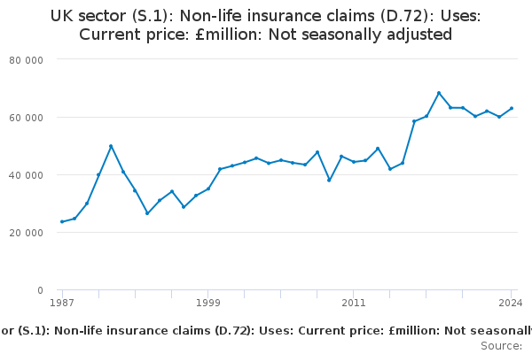 Download this time seriesUK sector (S.1): Non-life insurance claims (D.72): Uses: Current price: £million: Not seasonally adjusted
