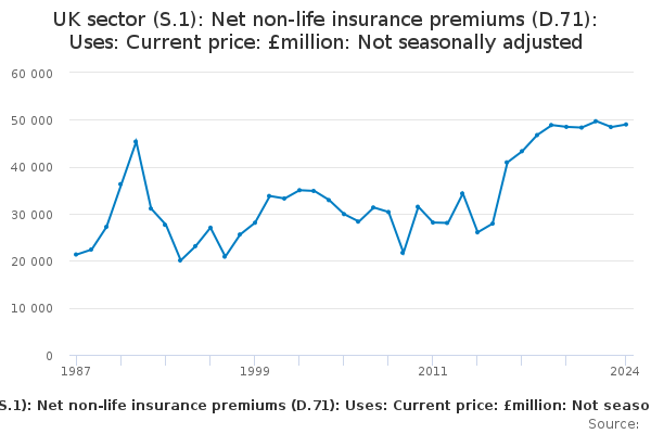 Download this time seriesUK sector (S.1): Net non-life insurance premiums (D.71): Uses: Current price: £million: Not seasonally adjusted