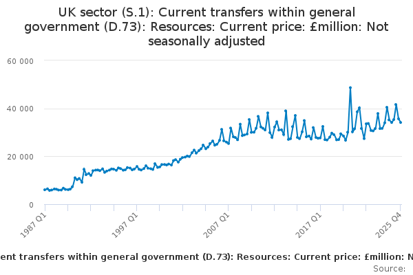 Download this time seriesUK sector (S.1): Current transfers within general government (D.73): Resources: Current price: £million: Not seasonally adjusted