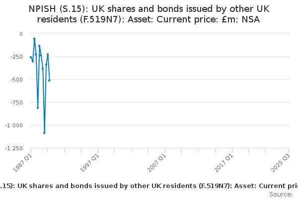 Download this time seriesNPISH (S.15): UK shares and bonds issued by other UK residents (F.519N7): Asset: Current price: £m: NSA