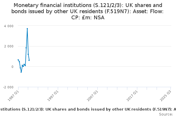 Download this time seriesMonetary financial institutions (S.121/2/3): UK shares and bonds issued by other UK residents (F.519N7): Asset: Flow: CP: £m: NSA