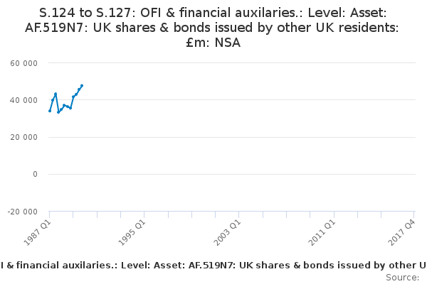 Download this time seriesS.124 to S.127: OFI & financial auxilaries.: Level: Asset: AF.519N7: UK shares & bonds issued by other UK residents: £m: NSA