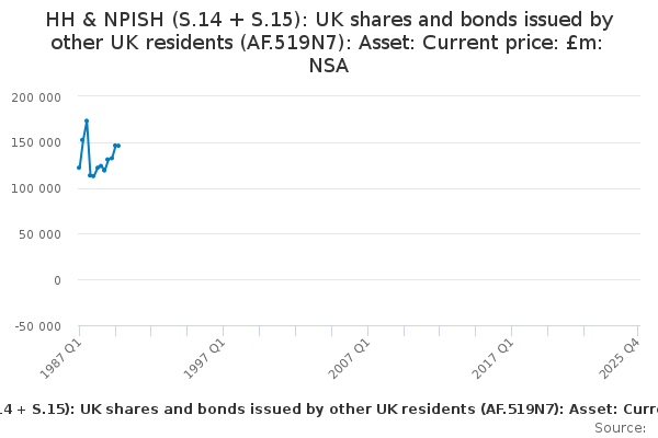 Download this time seriesHH & NPISH (S.14 + S.15): UK shares and bonds issued by other UK residents (AF.519N7): Asset: Current price: £m: NSA