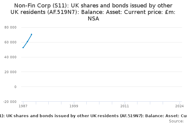 Download this time seriesNon-Fin Corp (S11): UK shares and bonds issued by other UK residents (AF.519N7): Balance: Asset: Current price: £m: NSA