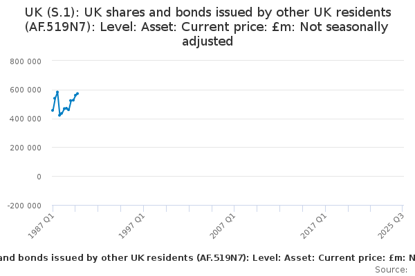 Download this time seriesUK (S.1): UK shares and bonds issued by other UK residents (AF.519N7): Level: Asset: Current price: £m: Not seasonally adjusted