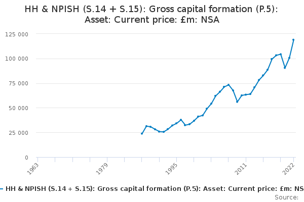 Download this time seriesHH & NPISH (S.14 + S.15): Gross capital formation (P.5): Asset: Current price: £m: NSA