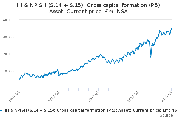 Download this time seriesHH & NPISH (S.14 + S.15): Gross capital formation (P.5): Asset: Current price: £m: NSA