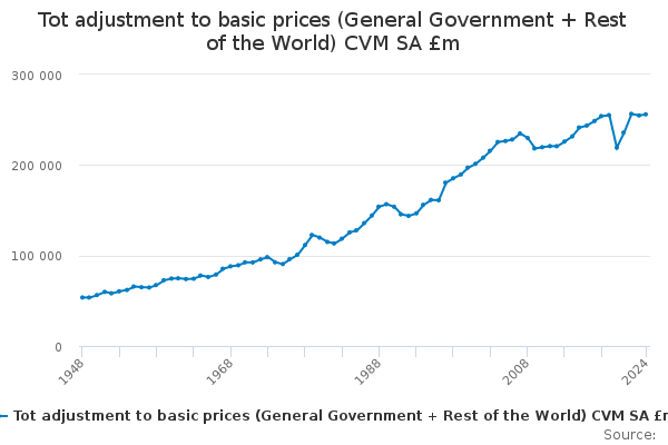 Download this time seriesTot adjustment to basic prices (General Government + Rest of the World) CVM SA £m
