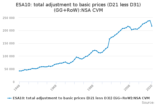 Download this time seriesESA10: total adjustment to basic prices (D21 less D31) (GG+RoW):NSA CVM
