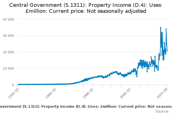 Download this time seriesCentral Government (S.1311): Property Income (D.4): Uses: £million: Current price: Not seasonally adjusted
