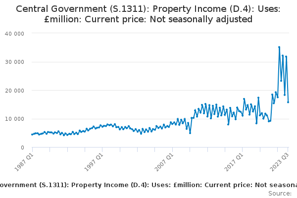 Download this time seriesCentral Government (S.1311): Property Income (D.4): Uses: £million: Current price: Not seasonally adjusted