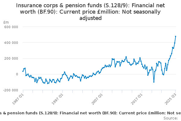 Download this time seriesInsurance corps & pension funds (S.128/9): Financial net worth (BF.90): Current price £million: Not seasonally adjusted