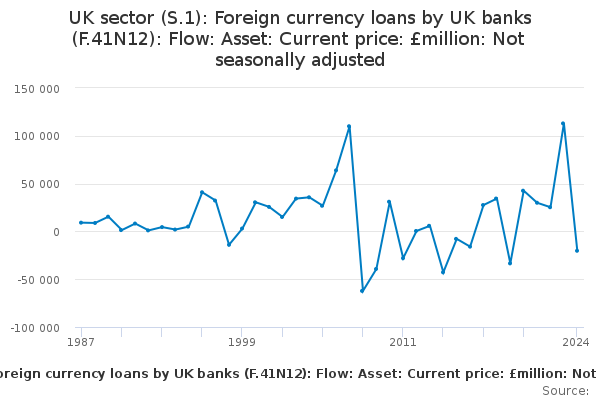 Download this time seriesUK sector (S.1): Foreign currency loans by UK banks (F.41N12): Flow: Asset: Current price: £million: Not seasonally adjusted