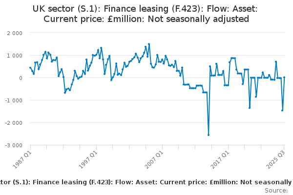 Download this time seriesUK sector (S.1): Finance leasing (F.423): Flow: Asset: Current price: £million: Not seasonally adjusted