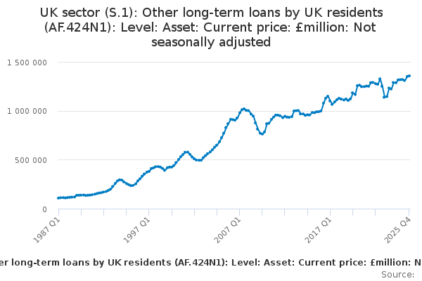 Download this time seriesUK sector (S.1): Other long-term loans by UK residents (AF.424N1): Level: Asset: Current price: £million: Not seasonally adjusted