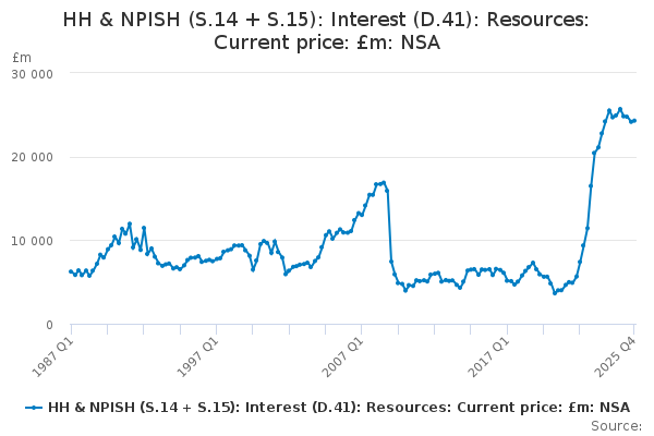 Download this time seriesHH & NPISH (S.14 + S.15): Interest (D.41): Resources: Current price: £m: NSA