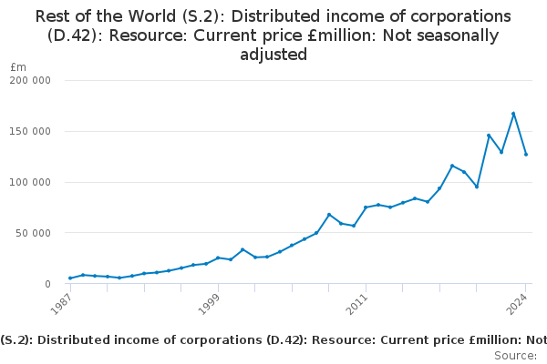Download this time seriesRest of the World (S.2): Distributed income of corporations (D.42): Resource: Current price £million: Not seasonally adjusted