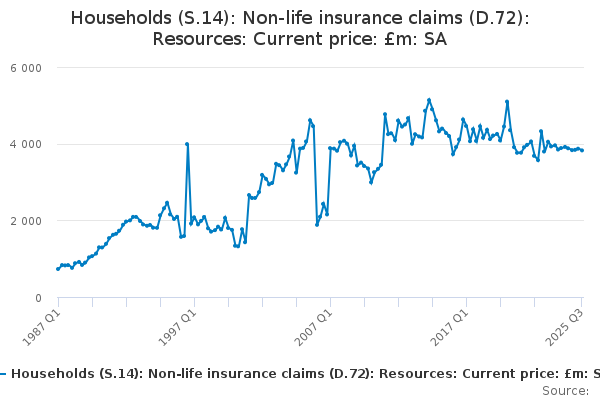 Download this time seriesHouseholds (S.14): Non-life insurance claims (D.72): Resources: Current price: £m: SA
