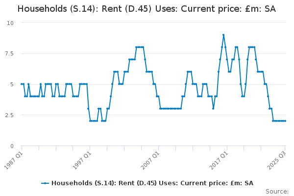 Download this time seriesHouseholds (S.14): Rent (D.45) Uses: Current price: £m: SA