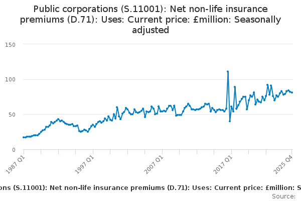 Download this time seriesPublic corporations (S.11001): Net non-life insurance premiums (D.71): Uses: Current price: £million: Seasonally adjusted