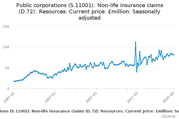Download this time seriesPublic corporations (S.11001): Non-life insurance claims (D.72): Resources: Current price: £million: Seasonally adjusted