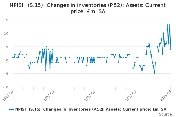Download this time seriesNPISH (S.15): Changes in inventories (P.52): Assets: Current price: £m: SA