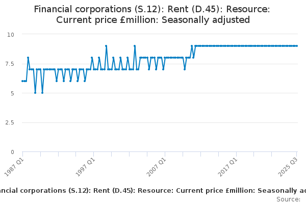 Download this time seriesFinancial corporations (S.12): Rent (D.45): Resource: Current price £million: Seasonally adjusted