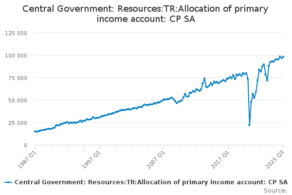 Download this time seriesCentral Government: Resources:TR:Allocation of primary income account: CP SA
