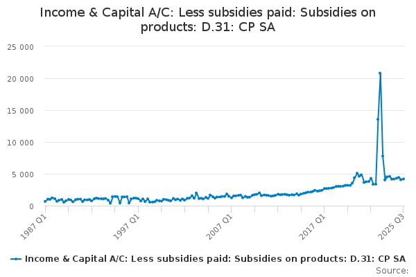 Download this time seriesIncome & Capital A/C: Less subsidies paid: Subsidies on products: D.31: CP SA