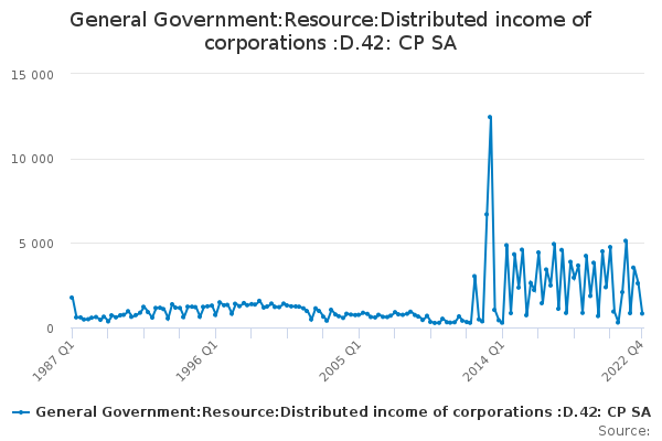 Download this time seriesGeneral Government:Resource:Distributed income of corporations :D.42: CP SA