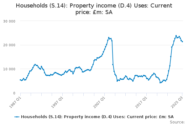 Download this time seriesHouseholds (S.14): Property income (D.4) Uses: Current price: £m: SA