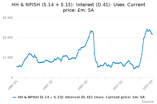 Download this time seriesHH & NPISH (S.14 + S.15): Interest (D.41): Uses: Current price: £m: SA