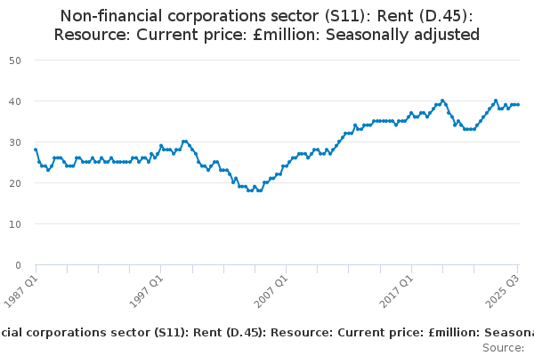 Download this time seriesNon-financial corporations sector (S11): Rent (D.45): Resource: Current price: £million: Seasonally adjusted