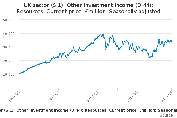 Download this time seriesUK sector (S.1): Other investment income (D.44): Resources: Current price: £million: Seasonally adjusted