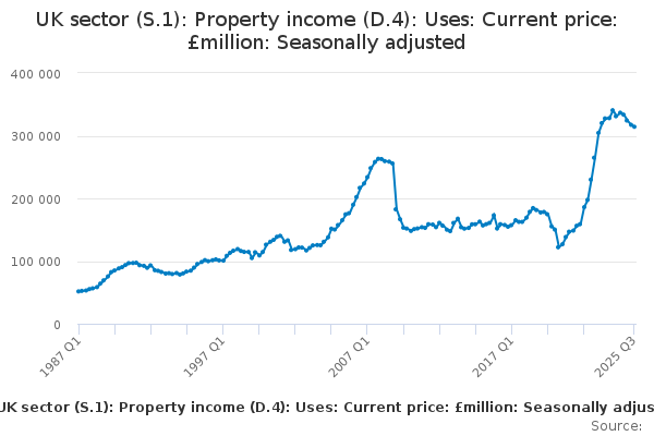 Download this time seriesUK sector (S.1): Property income (D.4): Uses: Current price: £million: Seasonally adjusted