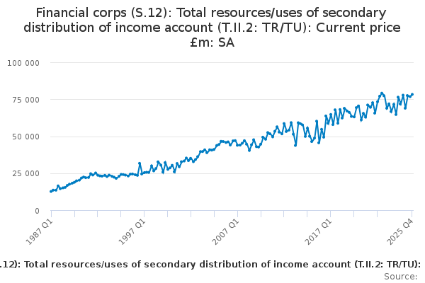 Download this time seriesFinancial corps (S.12): Total resources/uses of secondary distribution of income account (T.II.2: TR/TU): Current price £m: SA