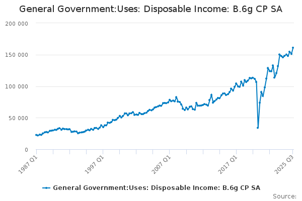Download this time seriesGeneral Government:Uses: Disposable Income: B.6g CP SA
