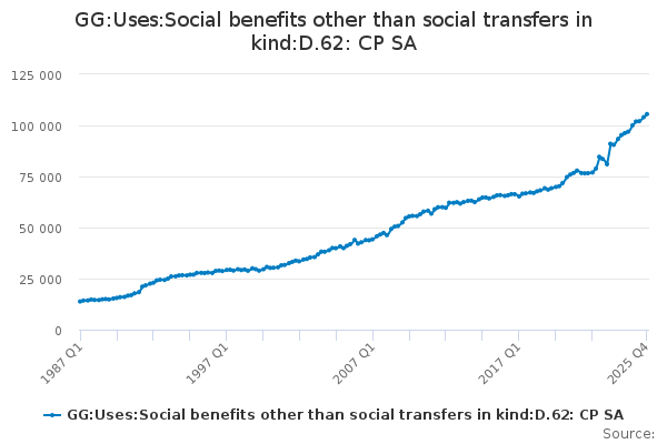 Download this time seriesGG:Uses:Social benefits other than social transfers in kind:D.62: CP SA