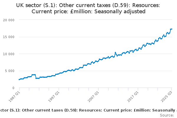 Download this time seriesUK sector (S.1): Other current taxes (D.59): Resources: Current price: £million: Seasonally adjusted