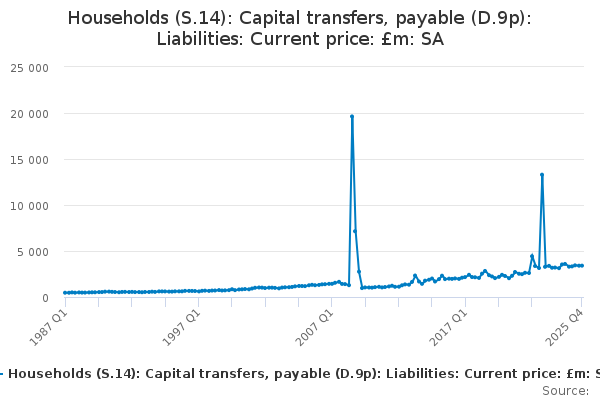 Download this time seriesHouseholds (S.14): Capital transfers, payable (D.9p): Liabilities: Current price: £m: SA