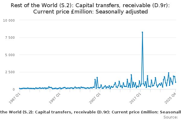 Download this time seriesRest of the World (S.2): Capital transfers, receivable (D.9r): Current price £million: Seasonally adjusted