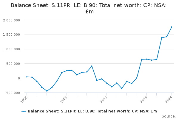 Download this time seriesBalance Sheet: S.11PR: LE: B.90: Total net worth: CP: NSA: £m
