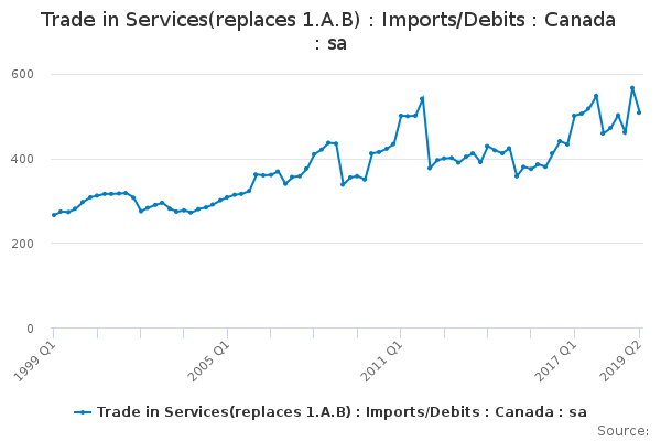 Download this time seriesTrade in Services(replaces 1.A.B) : Imports/Debits : Canada : sa