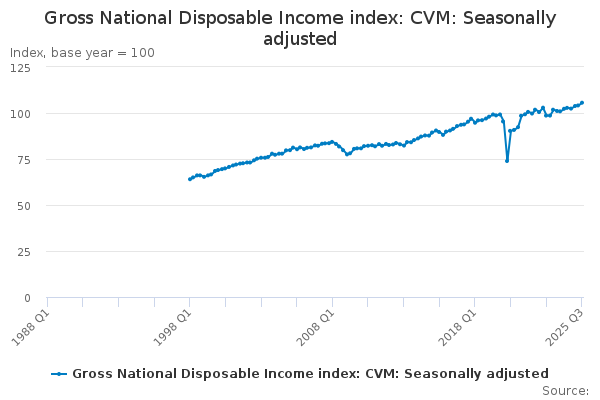 Download this time seriesGross National Disposable Income index: CVM: Seasonally adjusted