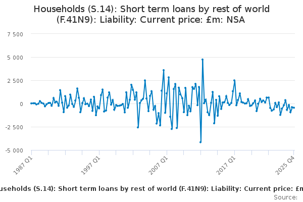 Download this time seriesHouseholds (S.14): Short term loans by rest of world (F.41N9): Liability: Current price: £m: NSA