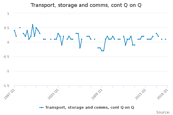 Download this time seriesTransport, storage and comms, cont Q on Q