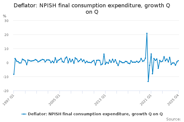 Download this time seriesDeflator: NPISH final consumption expenditure, growth Q on Q