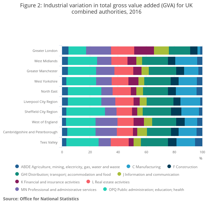 This is the first time the Office for National Statistics (ONS) has released a “balanced estimate” of regional gross value added (GVA(B)); this “balances” the income and production approaches to measuring the economy into a single estimate at a regional level; we believe the UK is the first country to produce a balanced measure of regional GVA.