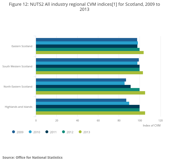 Figure 12: NUTS2 All industry regional CVM indices[1] for Scotland, 2009 to 2013